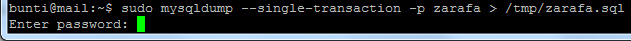 sudo mysqldump --single-transaction -p zarafa > /tmp/zarafa.sql