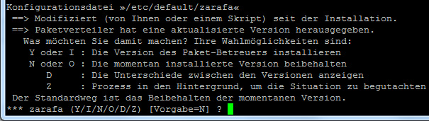 Während der Installation wird gefragt ob vorhandene Konfigurationsdateien überschrieben werden sollen.
